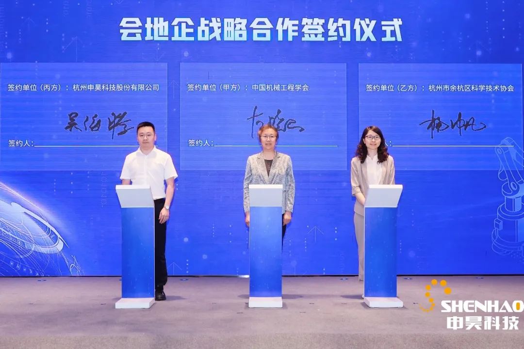 在智能制造數(shù)字化轉(zhuǎn)型與數(shù)字價(jià)值主題論壇中,申昊科技吳海騰副總經(jīng)理代表公司與中國機(jī)械工程協(xié)會、杭州市余杭區(qū)科學(xué)技術(shù)協(xié)會簽署了會地企戰(zhàn)略合作協(xié)議。