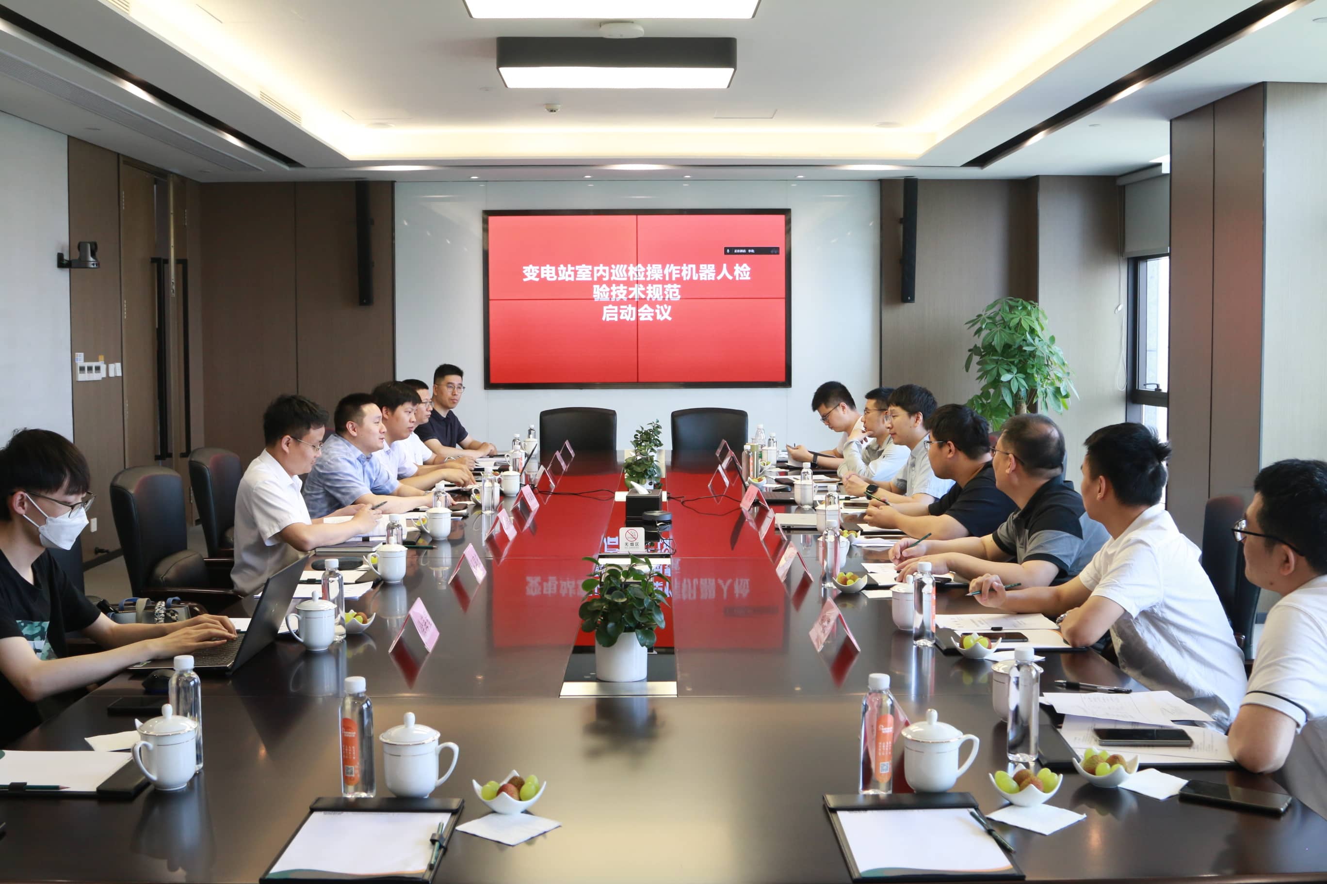 6月2日,《變電站室內(nèi)巡檢操作機(jī)器人檢驗(yàn)技術(shù)規(guī)范》團(tuán)體標(biāo)準(zhǔn)啟動(dòng)會在杭州申昊科技股份有限公司(以下簡稱“申昊科技”)召開。由國網(wǎng)電力科學(xué)研究院有限公司、中國電力科學(xué)研究院有限公司、杭州申昊科技股份有限公司、國網(wǎng)智能科技股份有限公司、國網(wǎng)溫州供電公司、浙江華電器材檢測研究院有限公司、深圳供電局有限公司、億嘉和科技股份有限公司、北京創(chuàng)拓國際標(biāo)準(zhǔn)技術(shù)研究院有限責(zé)任公司等公司代表組成的專家組出席會議。