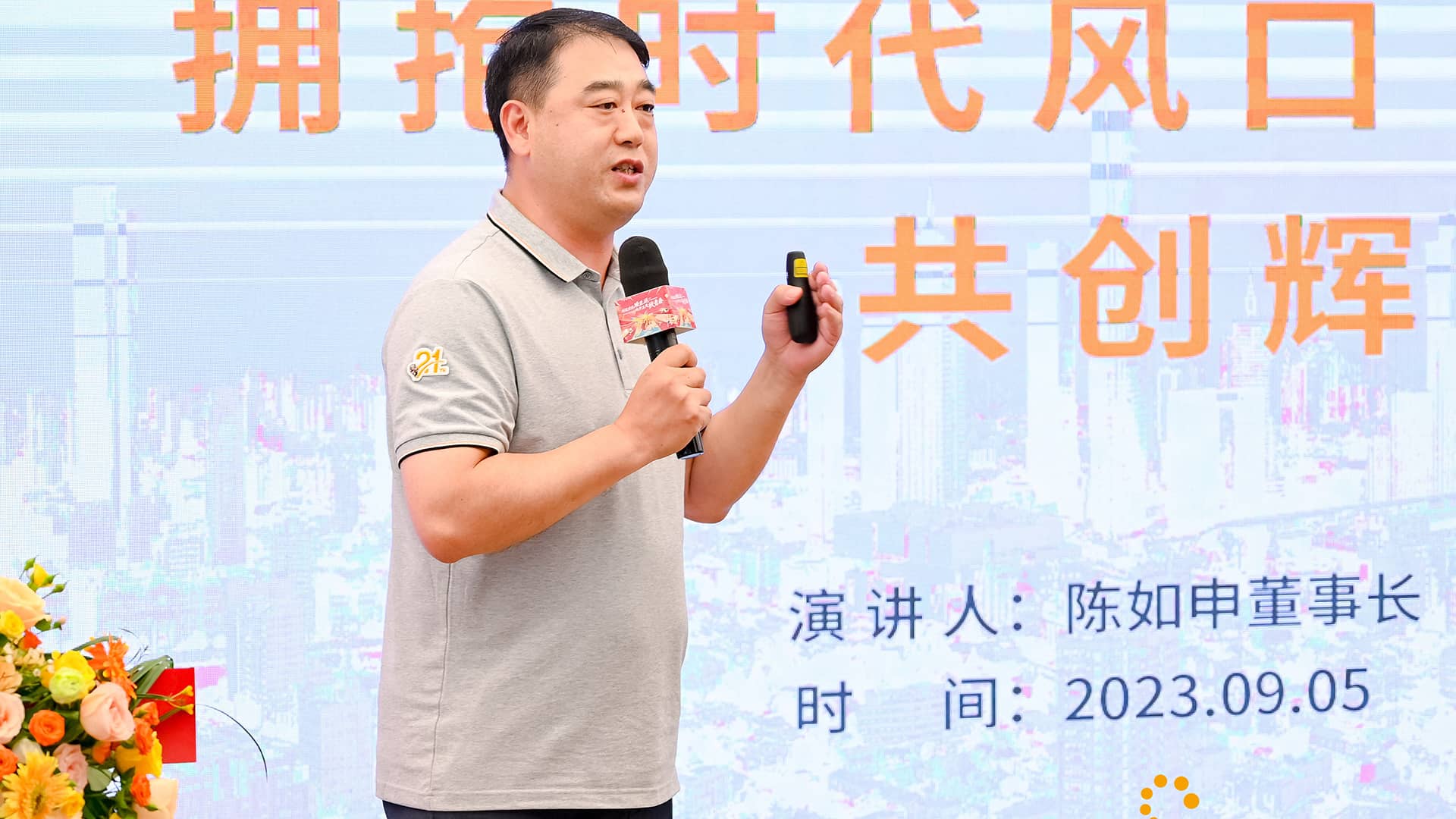 在慶典儀式上,陳如申董事長發(fā)表了以“擁抱時代風口,共創(chuàng)輝煌未來”為主題的重要致辭。